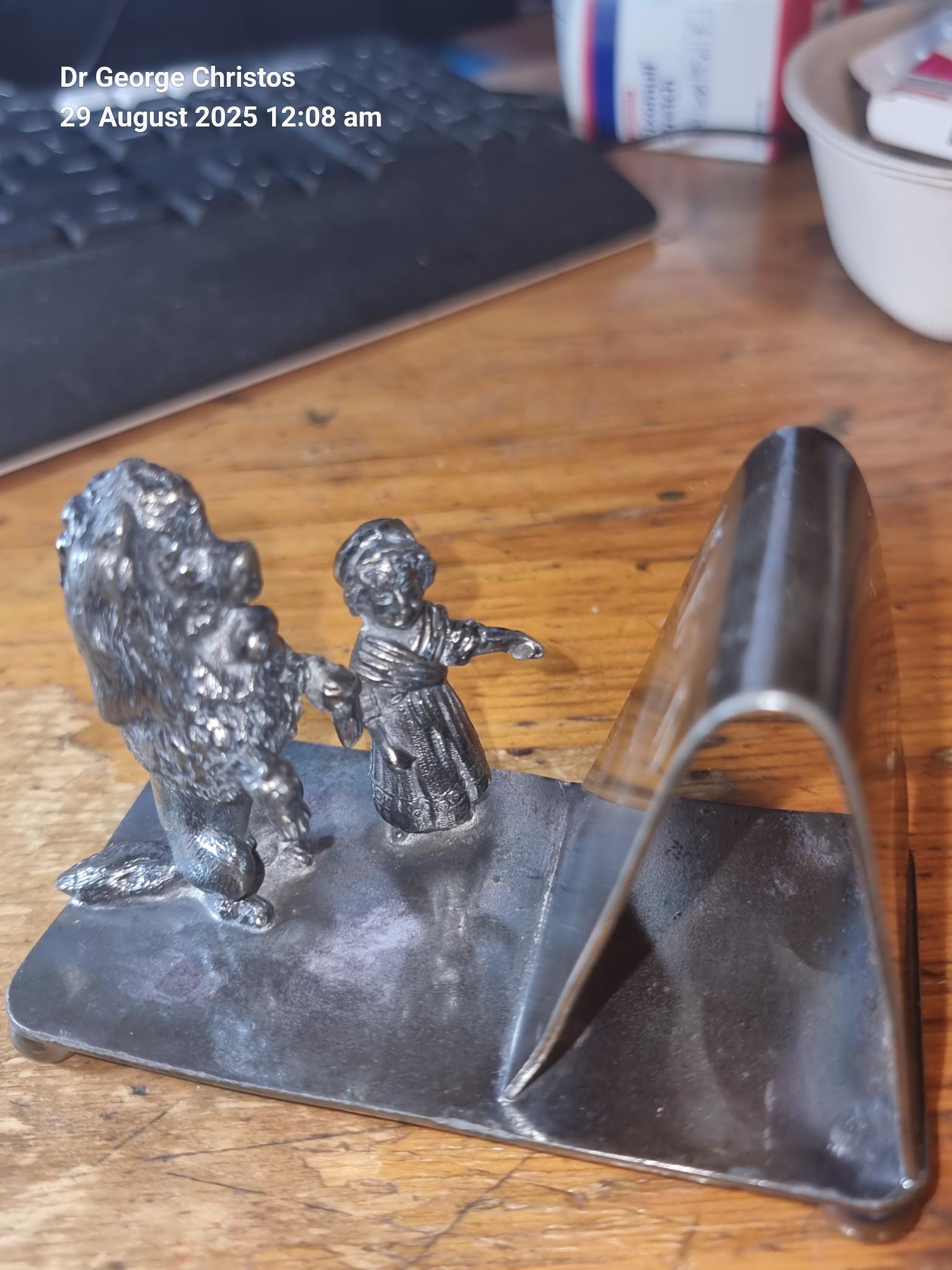 This figural napkin ring is shown in the book "Figural Napkin Rings: Collector's Identification and Value Guide",