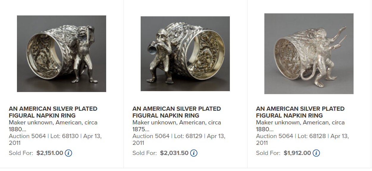 They graded this figural napkin ring as a C, and valued it at $200-350 in 1996.