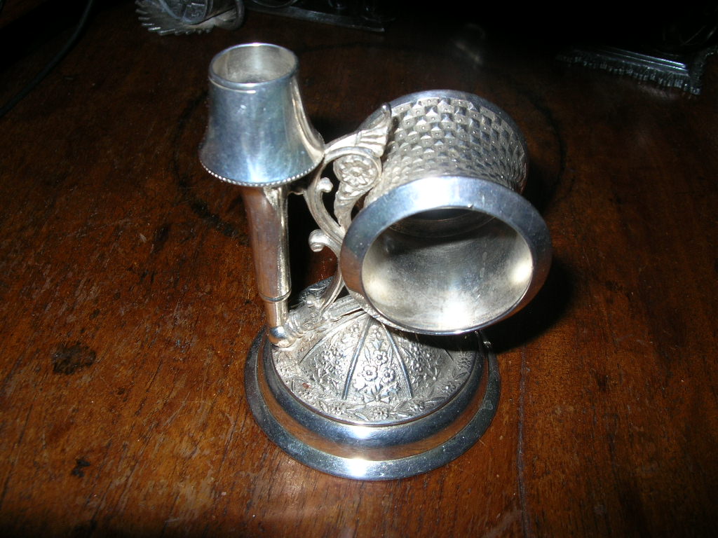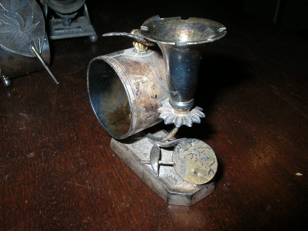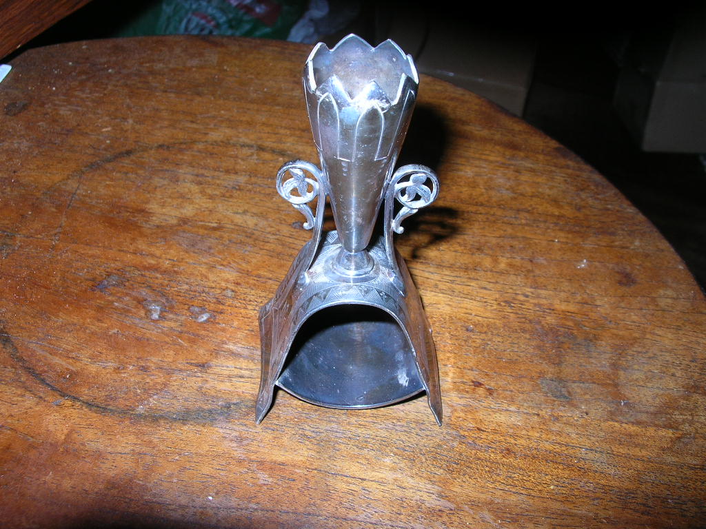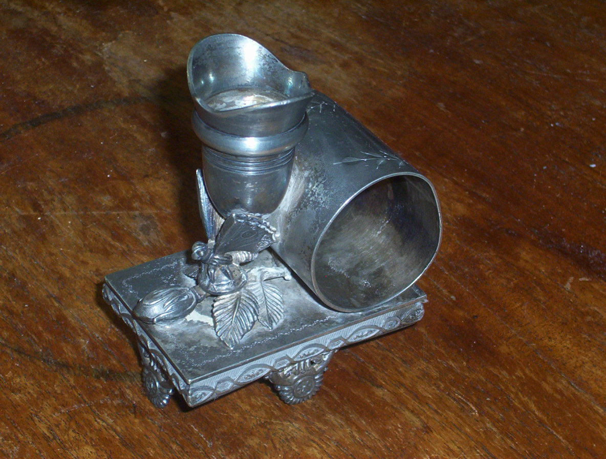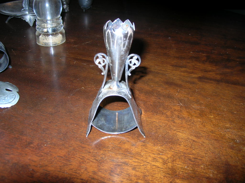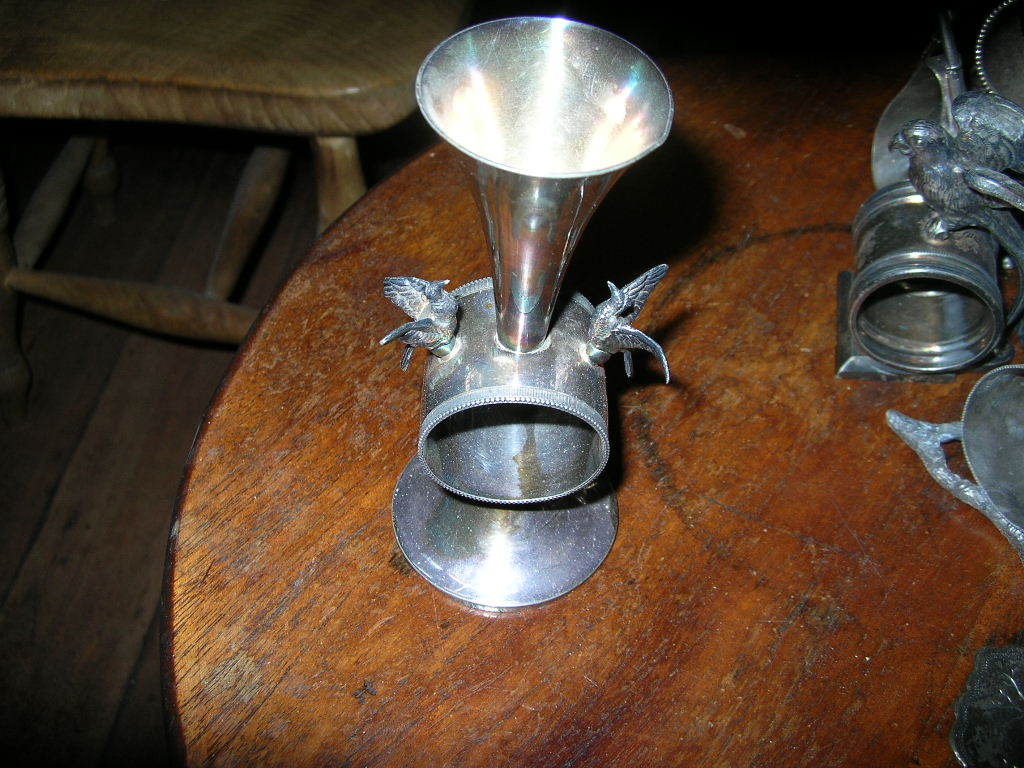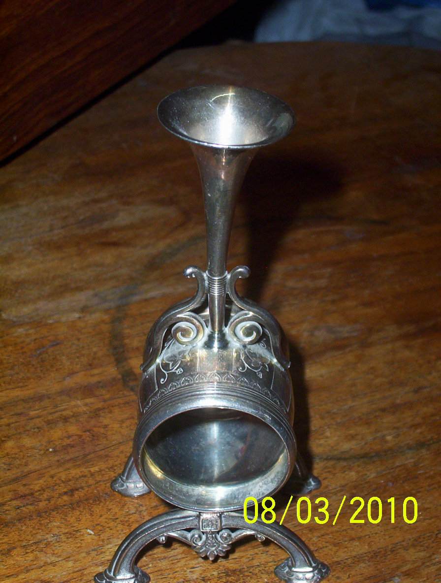 is a magnificent figural napkin ring with a bud vase. It an unusual