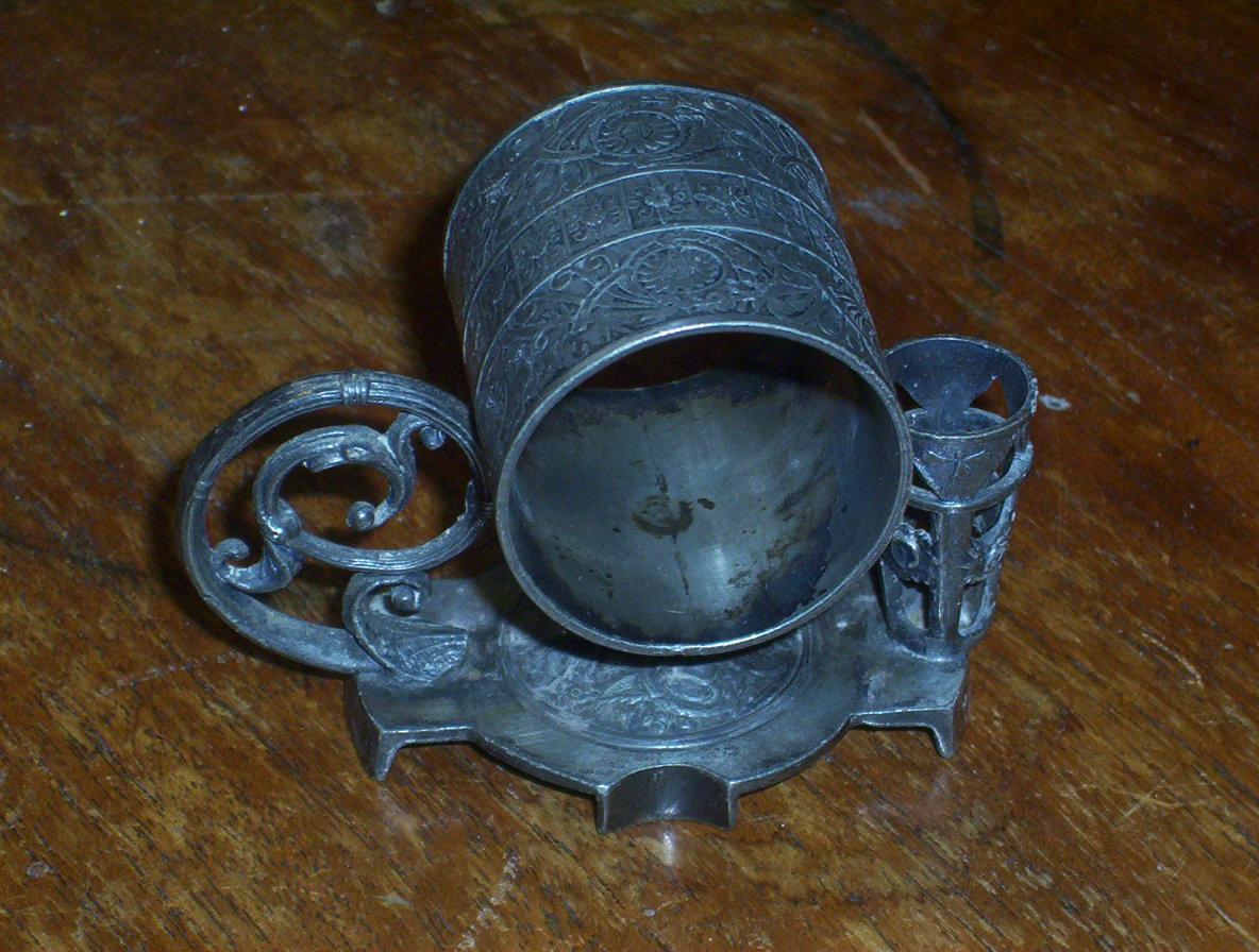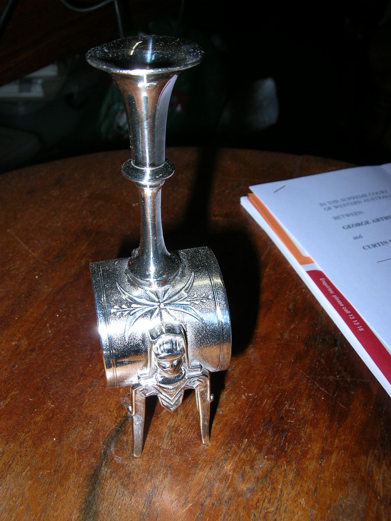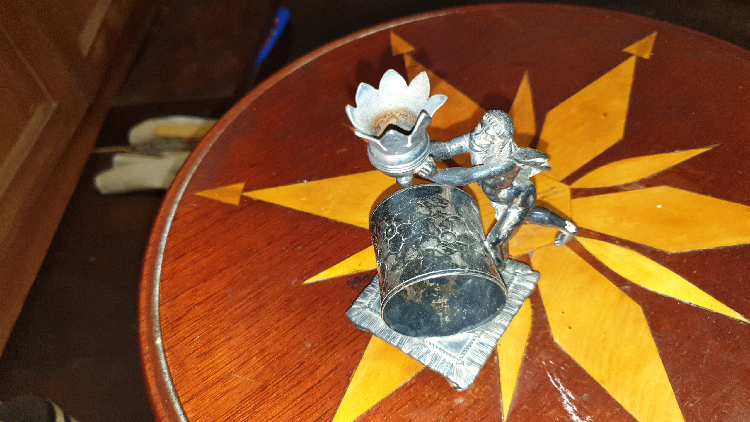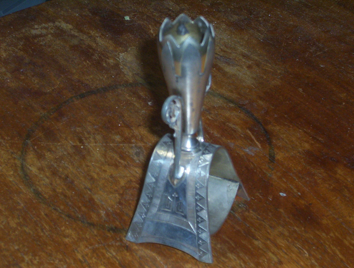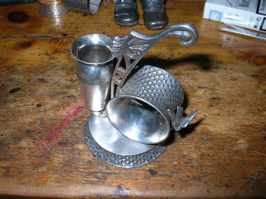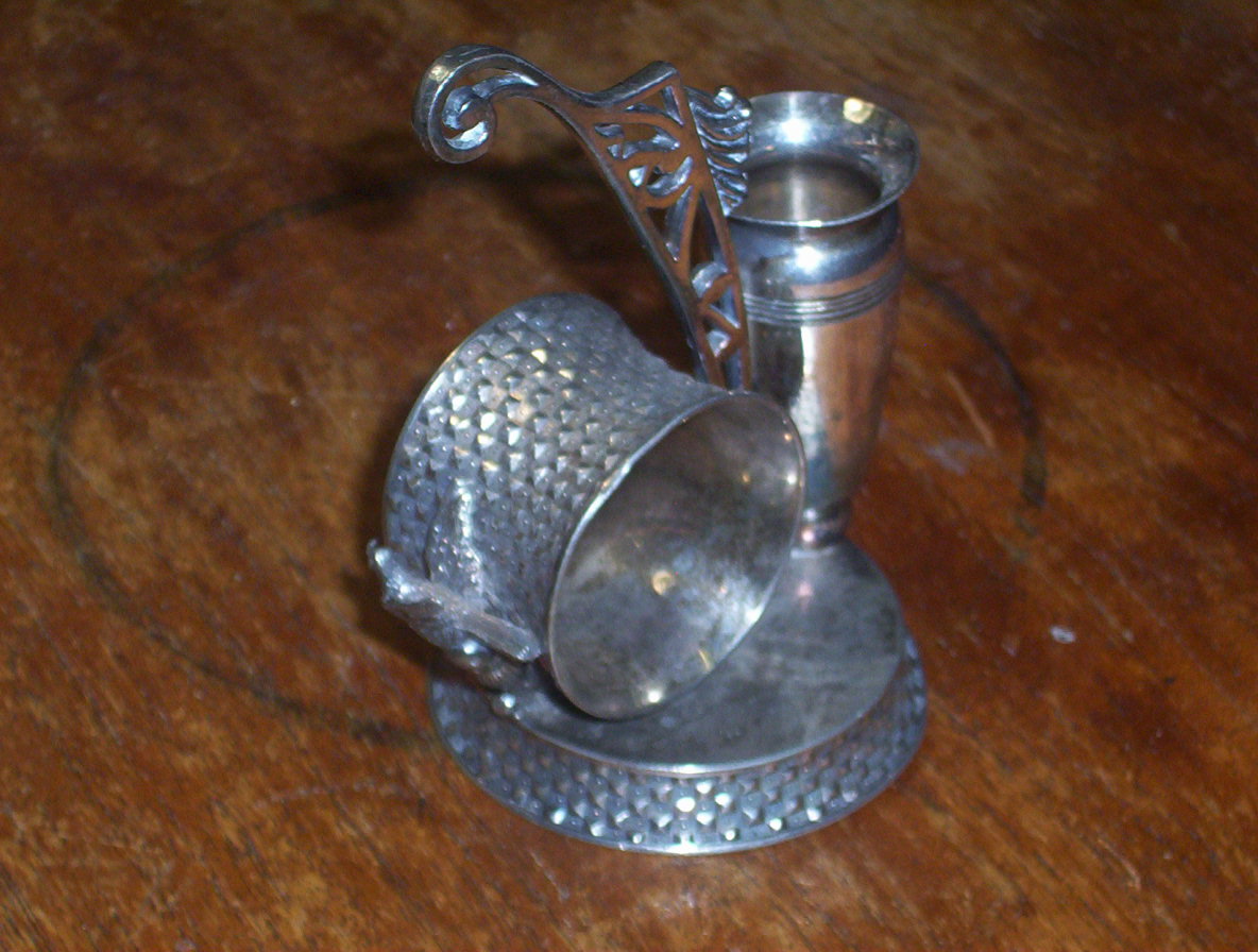 is a magnificent figural napkin ring with a bud vase. It an unusual