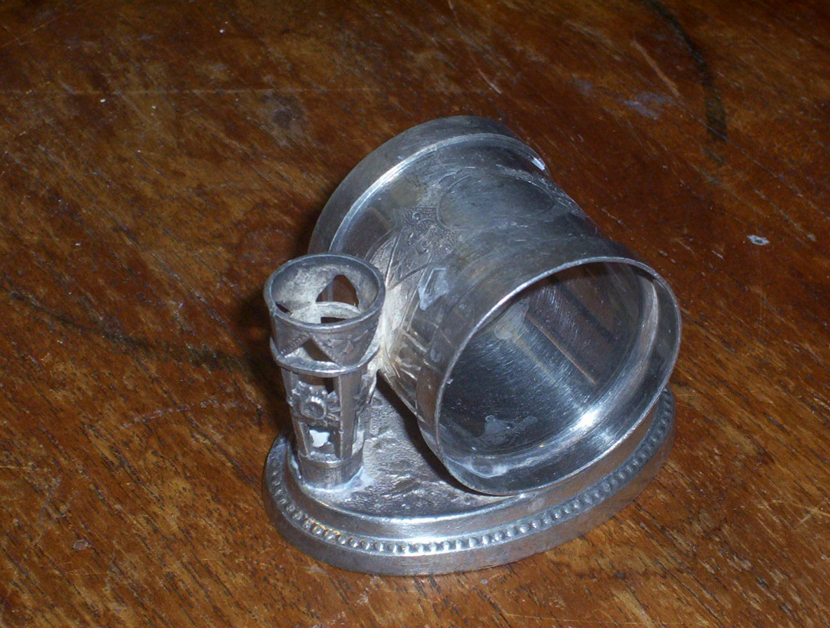 This ring is damaged. there is a hole in one of the rims of the napkin ring, which is ususually made extraordinarily thin.