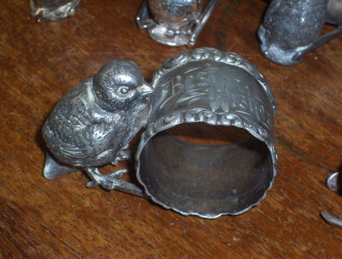 a chick on wishbone napkin ring, similar to ones above