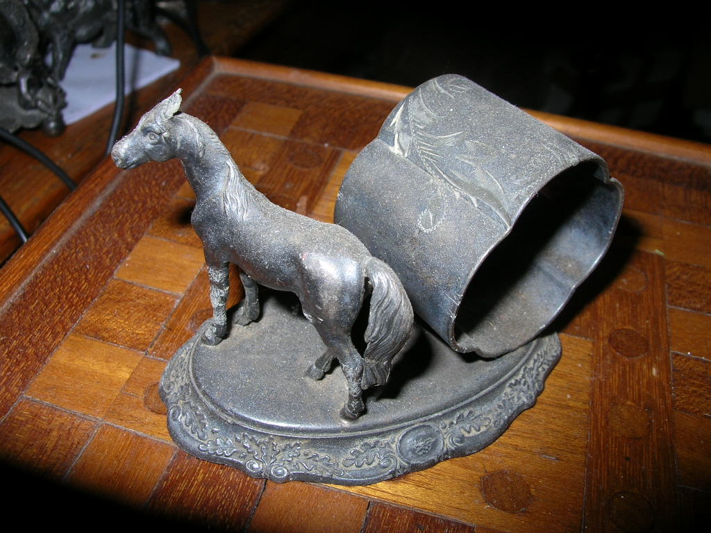 The same horse appears in many other figural napkin rings. There is a similar one in plate 91 on page 44. $275