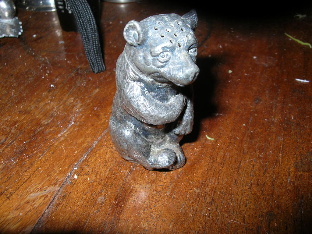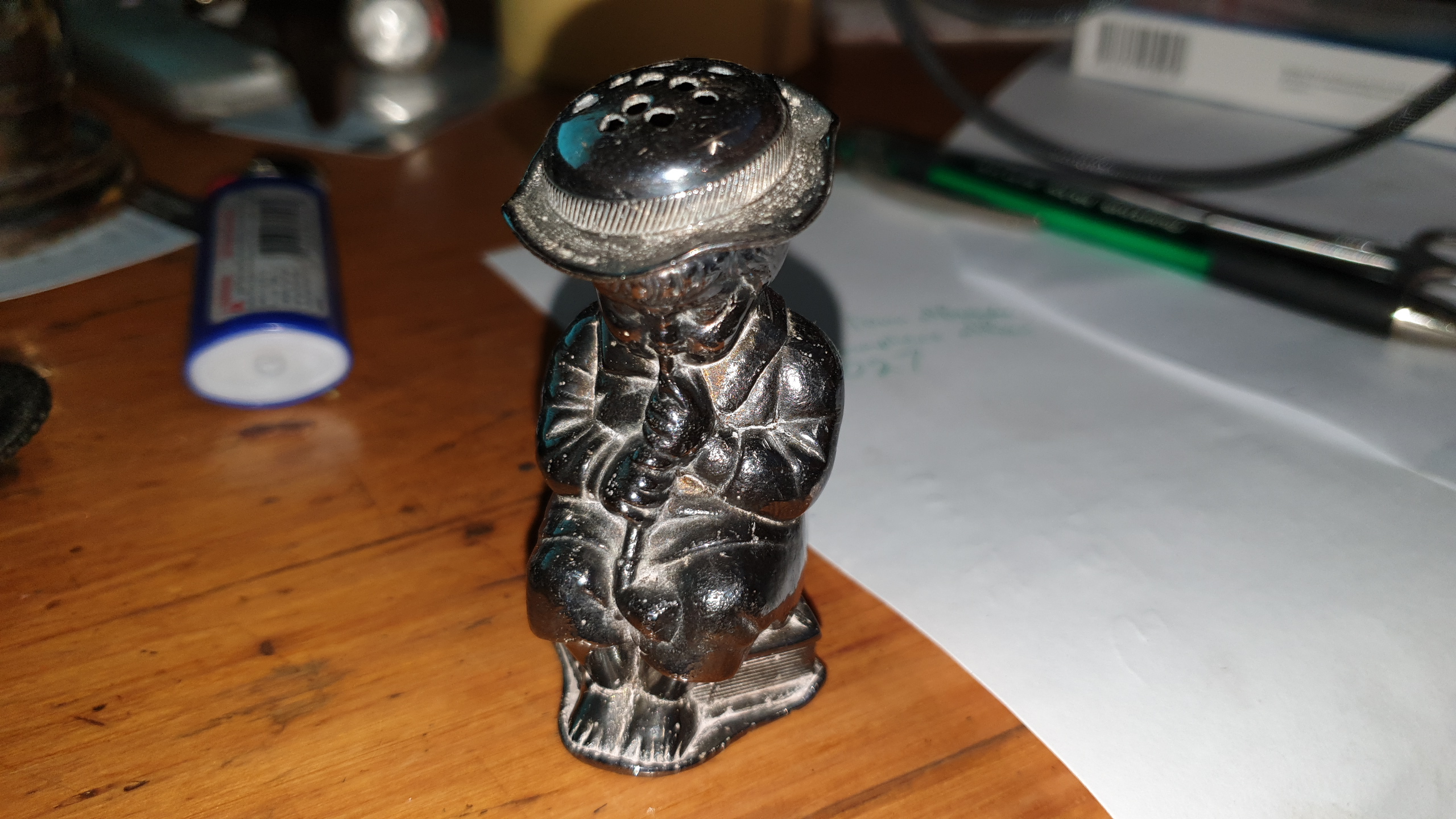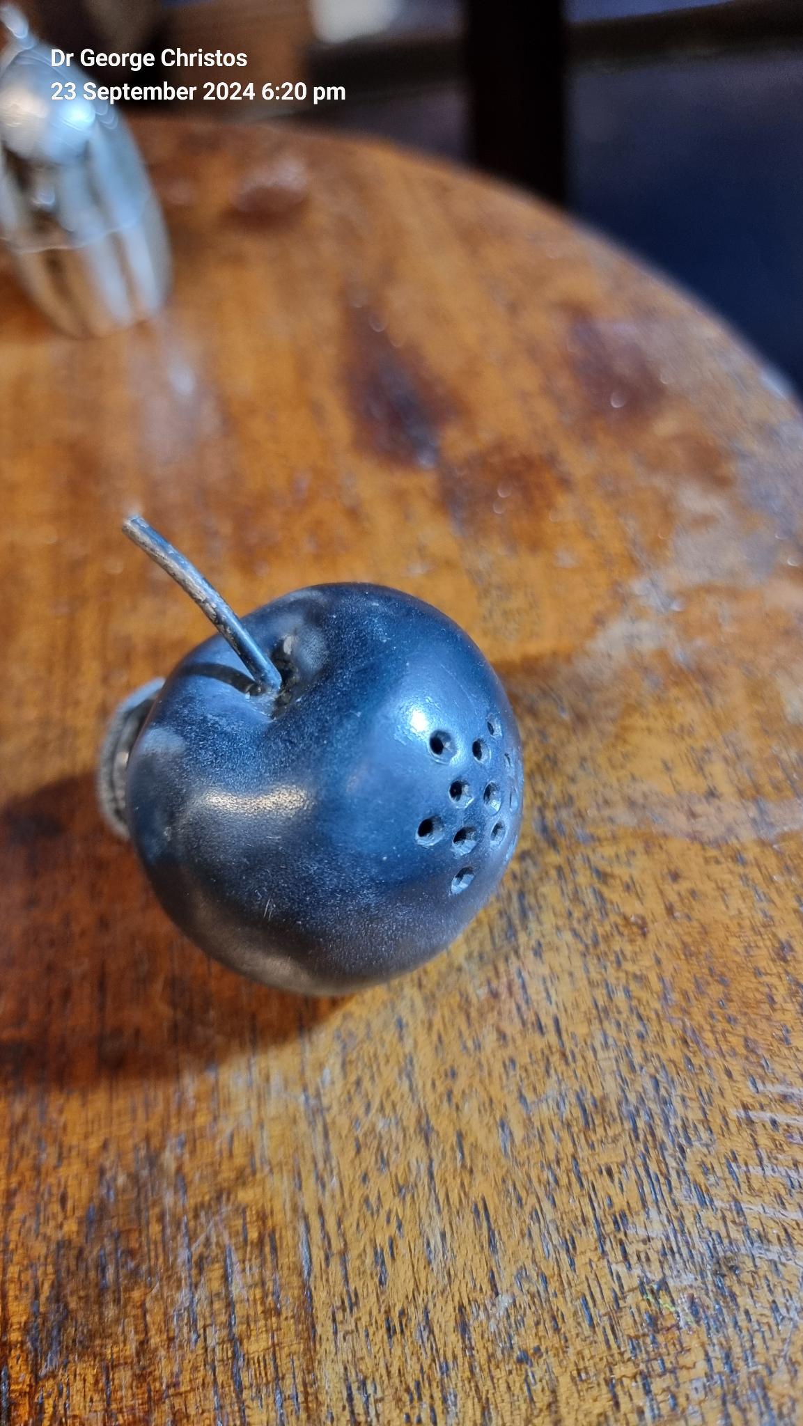 This is a cute pepper pot on the shape of an apple. It has a beautuful patina. $75