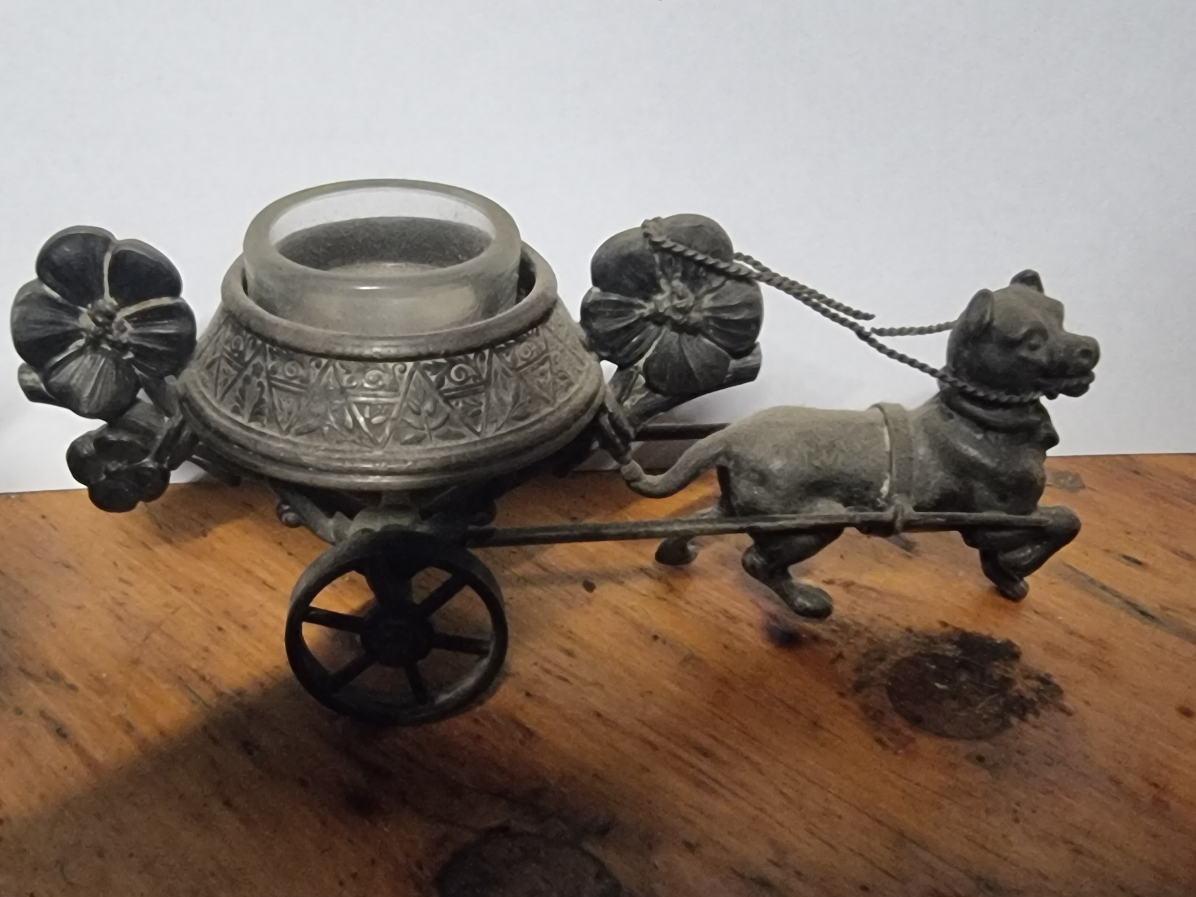 This is an amazing open salt which takes the form of a dig pulling a cart.