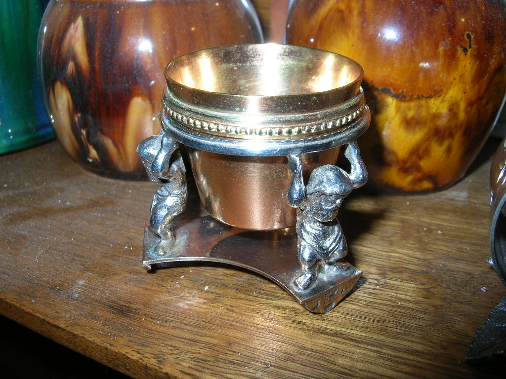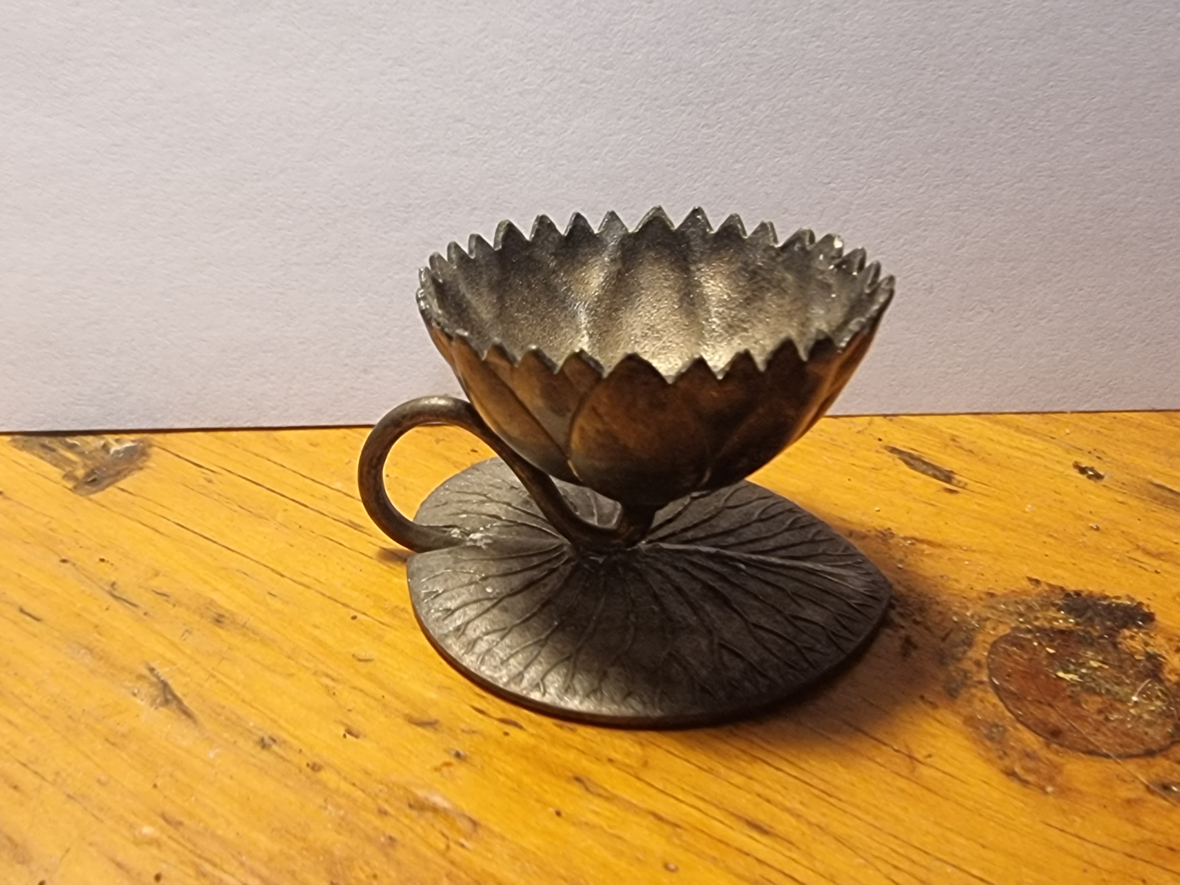 This little open salt in the form of a lily pad with an open flower is marked Meriden B Company 31. $75
