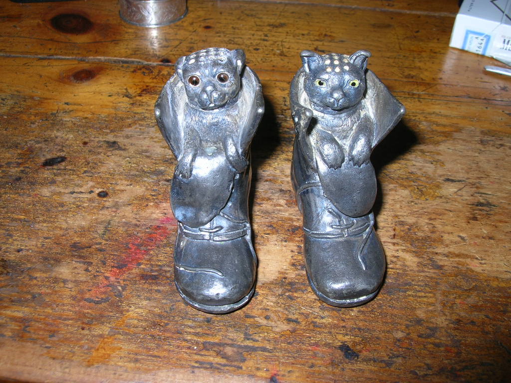 Very detailed and c1900 but I cannot loctae a maker's mark or number. $250 for both