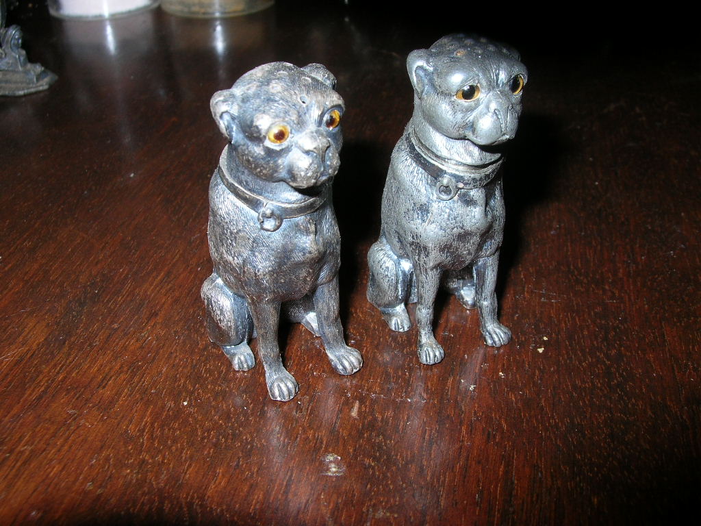 salt & pepper shakers in the form of a pug dog in a boot and a cat