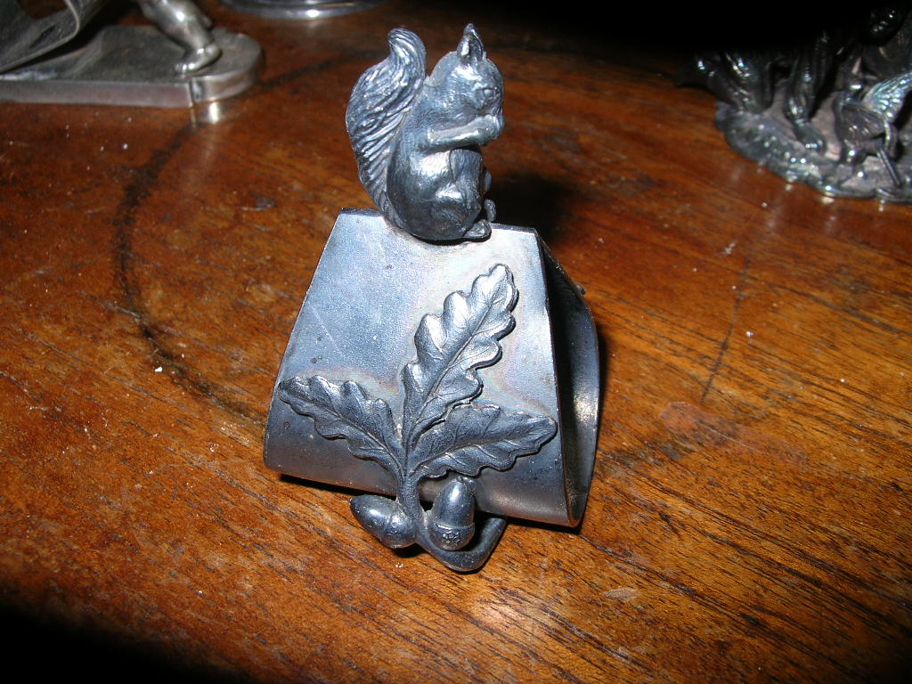 A lovely squirrel figural napkin ring. Unmarked as to maker and number.